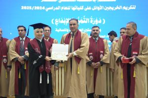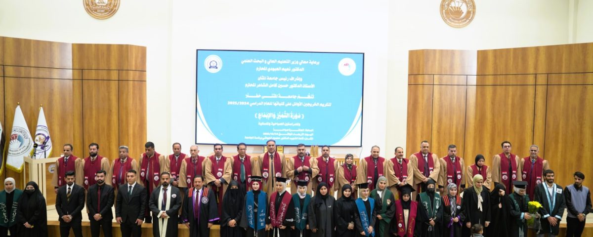 24 ديسمبر، 2025برعاية وزير التعليم العالي والبحث العلمي الدكتور نعيم العبودي ، وإشراف رئيس جامعة المثنى الأستاذ الدكتور حسين كامل الشاهر ، وبحضور رئيس مجلس محافظة المثنى احمد محسن آل دريول ، وممثل محافظ المثنى الدكتور نمير علي عبد الوهاب ، نظمت الجامعة احتفاليةً كبيرة لتكريم الخريجين الأوائل على الجامعة وجميع كلياتها للعام الدراسي 2024 _ 2025 وذلك تقديرا لتفوقهم الأكاديمي المميز ، بمشاركة الخرجيين وعائلاتهم.